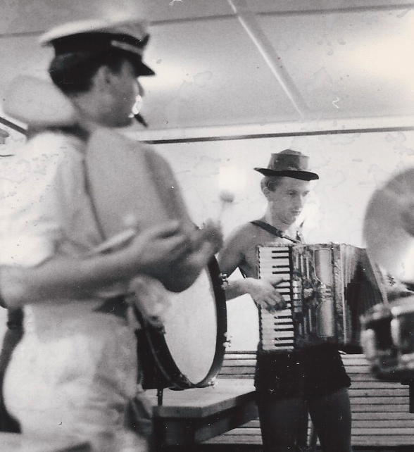 ...und auch für die gute Stimmung an Bord. Bei längeren Passagen ist immer mal wieder ein Bordfest fällig, und da ist er auch als Musikant gefragt.