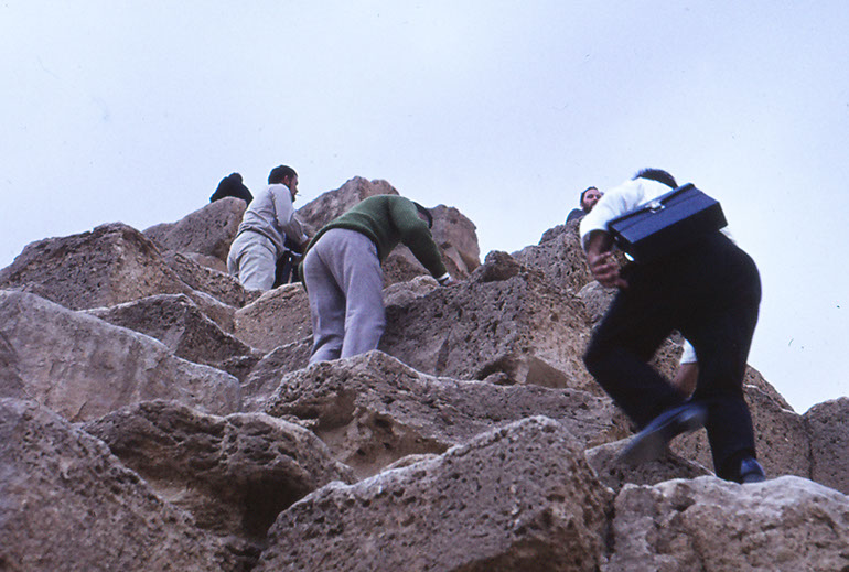 1964 ist es (noch) gestattet, die Pyramiden zu erklimmern! Davon machen wir natürlich Gebrauch, auch wenn es ziemlich anstrengend ist, auf diesen Steinquadern zu klettern.