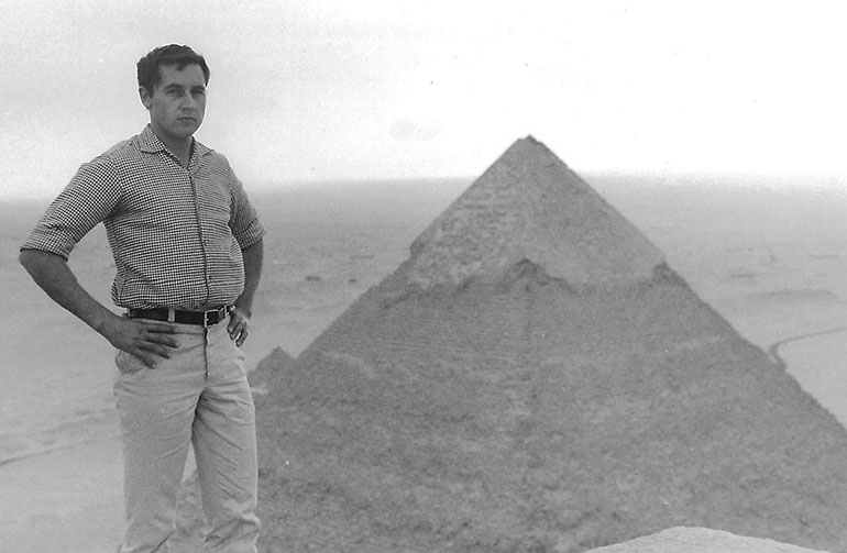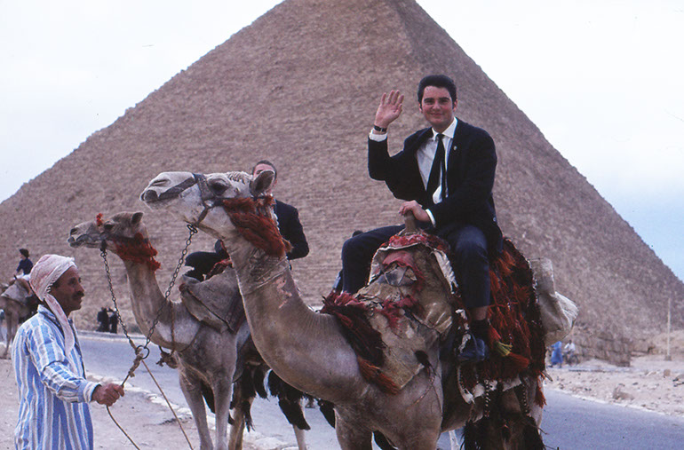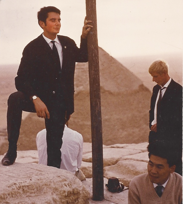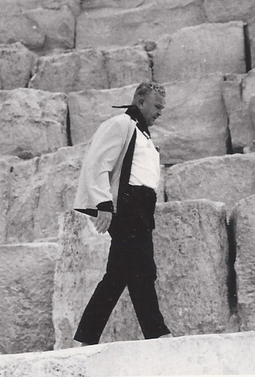 Geschafft! Edi Ackermann, der Zweite Steward, posiert stolz auf der grossen Pyramide, der Cheops,