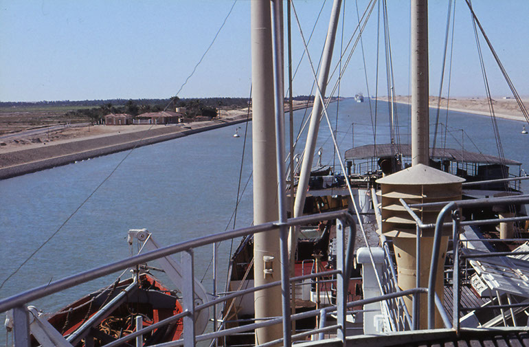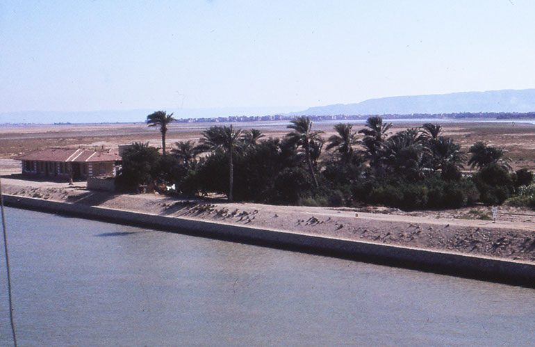 Der Suezkanal ist 162 Kilometer lang. Für die Durchfahrt im Konvoi mit anderen Schiffen brauchen wir rund zwei Tage. Von Suez bekommen wir nicht viel mit.