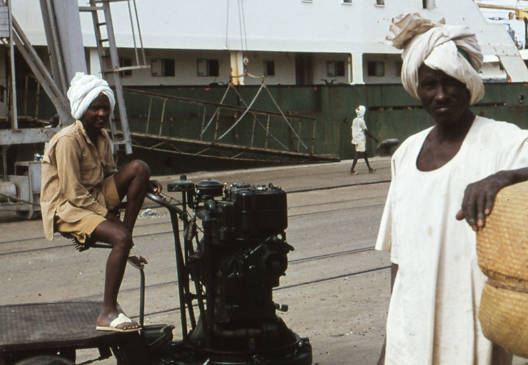 Im Roten Meer in Djibouti, damals Französisch Somaliland, erhalten wir keine Ladung. Wir bunkern aber Diesel und bekommen ein paar Stunden Landgang.