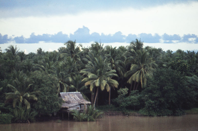 Nach Singapur fahren wir nicht, wir löschen ein paar Kisten vor Anker, dann gehts weiter nach Bangkok. Hier sind wir schon im Bangkok-River, auf dem reger Verkehr herrscht.