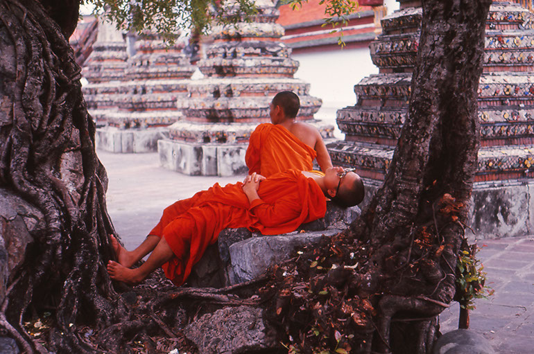 Studenten im Tempelbezirk, die eine zeitlang als Mönche leben.