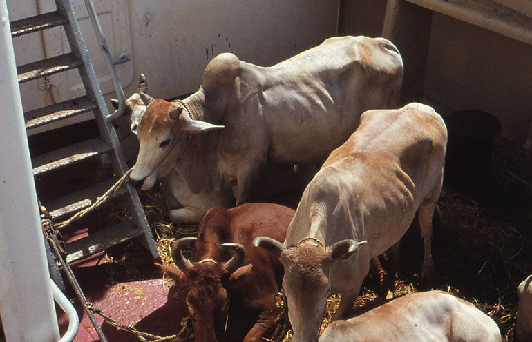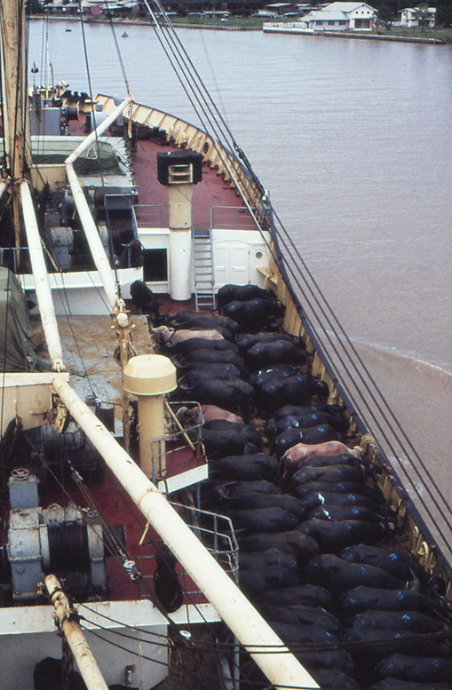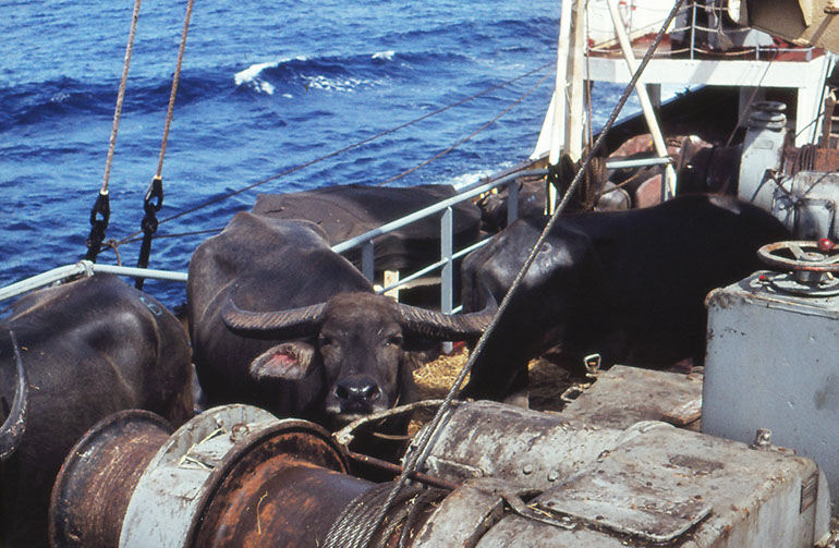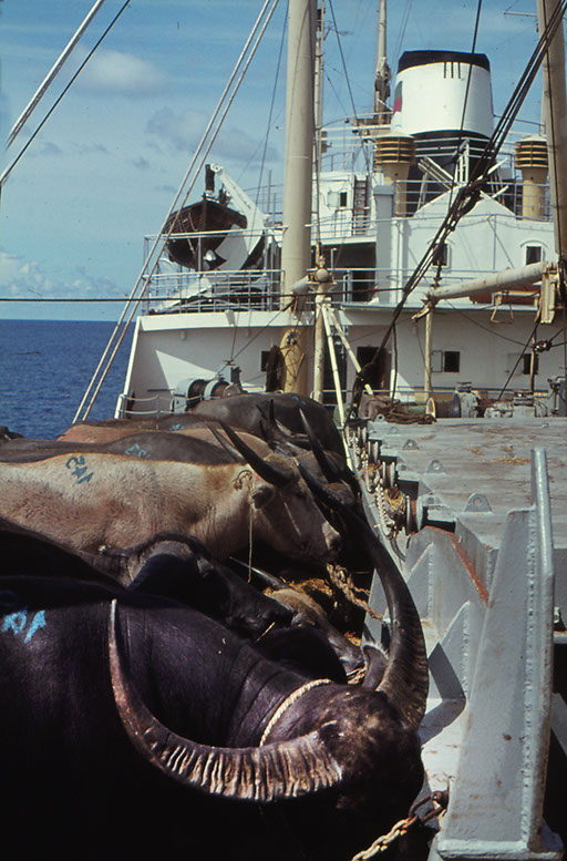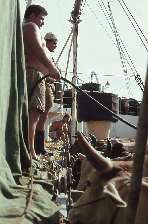 Die armen Tiere werden an Deck zusammengepfercht, Leib an Leib. Gutmütig wie sie sind, machen sie keinerlei Probleme.
