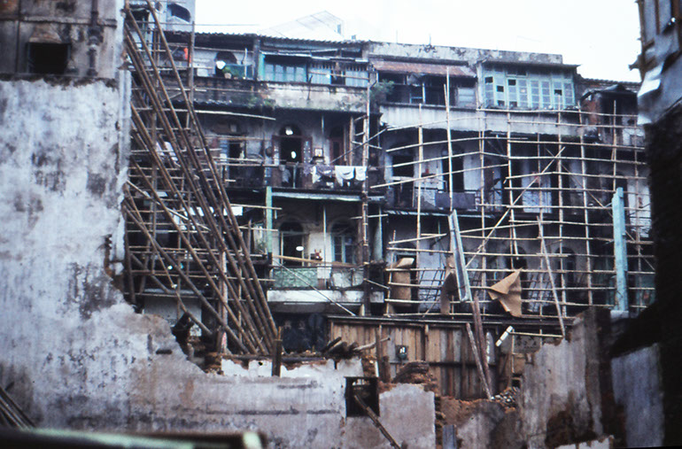 Sieht chaotisch aus, aber die Bambusgerüste haben bis heute überlebt.