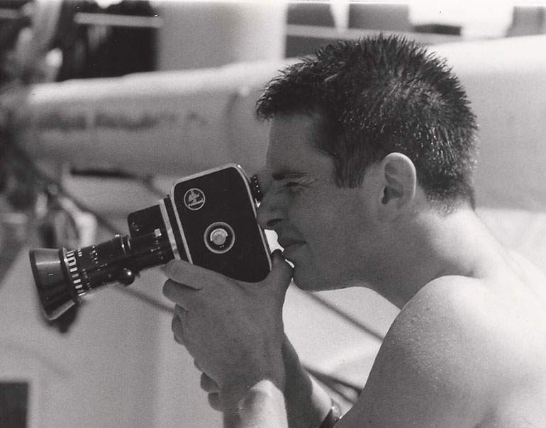 Messboy Kleisli mit seiner 8mm-Kamera Bolex. Ohne Batterien – mit Handaufzug...