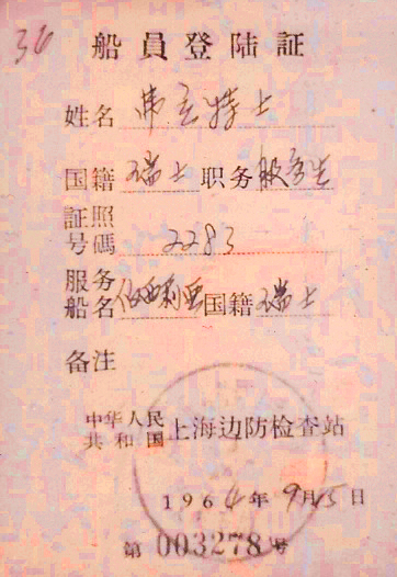 Nur von Politkommissären geführt dürfen wir von Bord. Das ist der dafür notwendige Landgangspass. Gezeigt werden uns nur schöne Parks...