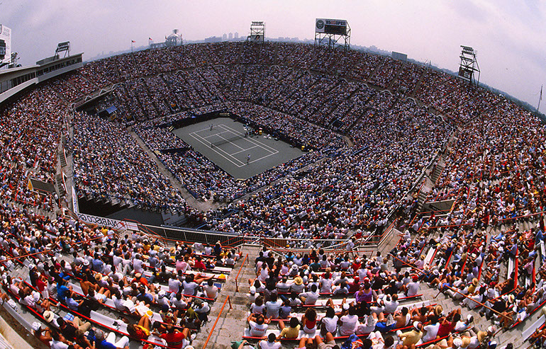 Aussenplatz mit Blick auf das Louis Armstrong Stadium.