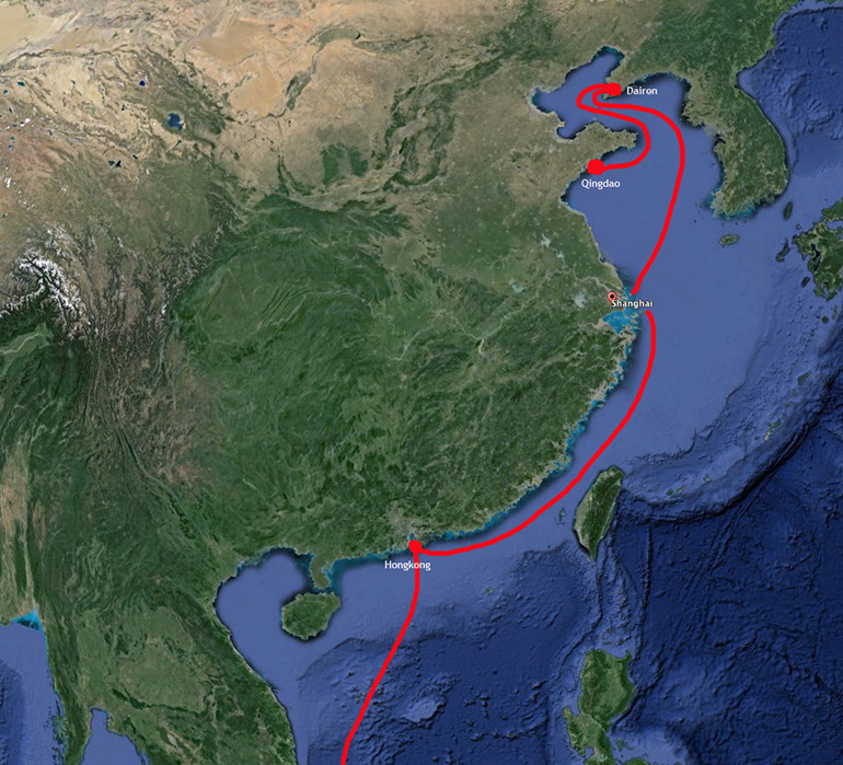 Und die Reise geht weiter. Von Hongkong nach Schanghai, dann weiter nördlich in die chinesischen Häfen Dairen und Qingdao.