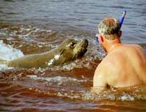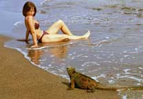 Immer wieder kommt es vor, dass irgend ein Wesen auf den Menschen zusteuert und den Kontakt zu ihm sucht. Dabei nähern sich sogar Leguane bis auf ein paar Zentimenter und scheinen sich dabei total wohl zu fühlen. Bei den Land-Leguanen funktioniert das allerdings nicht, die sind sehr scheu und müssen auf langen Wanderungen und unter kundiger Führung im Busch ausfindig gemacht werden. Der Grund: Auf der einzigen Insel, wo diese Tiere noch vorkommen, gab es wilde Hunde (vom Menschen importiert), die sich praktisch von diesen Leguanen ernährten, bis sie beinahe ausgestorben waren. Die Wächter des Nationalparks konnten sozusagen in letzter Minute die Hunde eliminieren und das alte Gleichgewicht der Natur wieder herstellen. Jetzt vermehren sich die Leguane wieder, aber es wird natürlich mehrere Generationen dauern, bis sie wieder zutraulich werden.