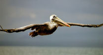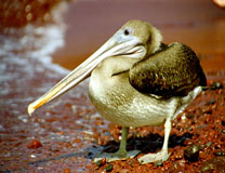 Ich sitze an einem dieser wunderbaren Lavastrände und fühle mich als Teil der Natur, mitten im vollen Leben. Links von mir liegen ein paar dösende Seelöwen, schutzlos mit dem Bauch nach oben und ein zufriedenes Lächeln im Gesicht, im schwarzen Lavagestein vor mir zeigt mir eine knallrote Klippenkrabbe ihre eindrücklichen Fangarme, und knapp daneben guckt mich ein kleiner Drache an, ein Bild wie aus den Tagen der Schöpfung. Ein Prachtsexemplar von Pelikan überfliegt mich, landet mit weitausgebreiteten Schwingen – mindestens zwei Meter Spannweite – auf dem Strand und positioniert sich dort so malerisch, dass ich zur Kamera greife. Gut, dass ich das 300-Millimeter-Tele dabei habe, denke ich noch.