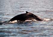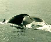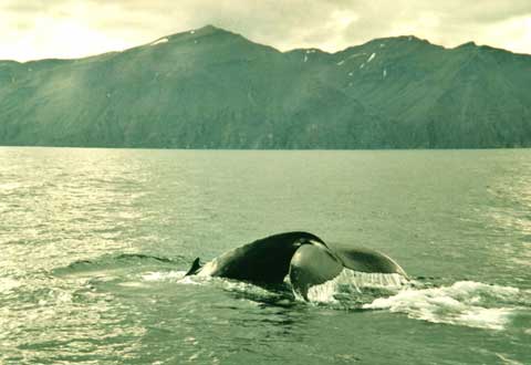 Wir aber hatten Glück! Nach einer Stunde Fahrt Richtung offenes Meer – es war eisig kalt und wir froren erbärmlich – sichteten wir die ersten Zwergwale, respektive ihre Rückenflossen. Wenigstens das, dachten wir und stellten uns auf zwei weitere Stunden Frieren ein. Aber auf einmal schoss Adrenalin in unsere erstarrten Glieder, als wir die Fontäne eines ausblasenden Wals entdeckten. Unser Kutter nahm Fahrt auf und versuchte sich dem Koloss zu nähern. Es war ein riesiger Buckelwal, den man nur sehr selten zu Gesicht bekommt. Er tauchte aber kurzerhand weg, und gespannt suchten 40 Augenpaare die Meeresoberfläche auf beiden Seiten des Kutters ab. Minuten vergingen. Da! Plötzlich kam er wieder rauf, blies seine Fontäne und zeigte seinen gewaltigen Rücken. Das wiederholte sich ein paar Mal, und dann bäumte sich das mächtige Tier zu einem so genannten «deep dive» auf (d.h. zu einem langen Eintauchen, bei dem der Wal dann 8-9 Minuten unten bleibt), und präsentierte seinem Publikum beim ungestümen Abtauchen nicht nur seinen mächtigen Rumpf, sondern kurz vor dem endgültigen Eintauchen auch seine imposante Schwanzflosse. Genau so, wie wir es auf dem Werbeprospekt der Whalewatcher-Firma sahen! Aber diesmal live! Ein grosser Moment, ein tiefgehendes Erlebnis. Mit stolzgeschwellter Brust fuhren wir nach drei Stunden in den Hafen von Husavik zurück. Wir hatten ihn gesehen, den Buckelwal. Wir! Und nicht die «normalen 99%-Touristen», die sich mit Zwergwalen begnügen müssen...! Wow!