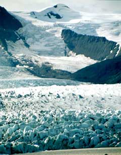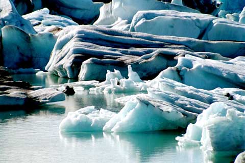 Rund 10% Islands sind mit Gletschern bedeckt, die teilweise hunderte von Metern dick sind. Das war nicht immer so. Als die Insel vor 15-20 Mio Jahren entstand, da herrschte ein warmes Klima, das etwa jenem des heutigen Europas entsprach. Erst vor zwei Mio Jahren hatten sich die ersten Gletscher gebildet, dann folgte eine ganze Reihe von Wärme- und Eiszeiten – 18 sollen es gewesen sein – und vor etwa 700’000 Jahren war Island ein echtes «Eisland» mit 10 grossflächigen Gletschern, wobei die ganze Südhälfte der Insel unter einer kilometerdicken Eismasse lag, die bis ins Meer reichte. Vor 12’000 Jahren setzte dann eine Wärmeperiode ein, die sämtliche Gletscher zum Verschwinden brachte, sodass die Insel um ca. 3’000 v.Chr. vollkommen eisfrei war. Dann wurde es langsam wieder kalt, und es bildeten sich neue Eismassen. Heute, d.h. seit rund 100 Jahren, befindet sich «Iceland» wieder in einer Wärmephase – die Gletscher schwinden nach und nach und ziehen sich langsam auf die Bergregionen zurück. Durch die heute stattfindende globale Erwärmung beschleunigt sich der Rückgang noch, und gewaltige Mengen von Wasser fliessen tagtäglich durch unzählige Ströme nach allen Himmelsrichtungen ins Meer.