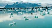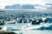 Einen einzigen Gletscher gibt es noch, der fast bis zum südlichen Meerufer reicht, der Vatnajökull, es ist der grösste der Insel, dick und mächtig. Und an seinem Fuss liegt eine Sehenwürdigkeit, die unvergleichlich schön ist: die Gletscherlagune Jökulsarlon. Wir hatten das seltene Glück, diese Lagune bei strahlendem Sonnenschein und tiefblauem Himmel zu erleben. Ehrlich – etwas Schöneres kann man sich kaum vorstellen! In dieser Lagune, die zwischen dem Gletscherfuss und dem Meer liegt, schwimmen Hunderte von Eisbergen, riesige Brocken ebenso wie kleine glitzernde Eiskunstwerke der Natur, die durch die Erwärmung vom Gletscher abgesplittert sind und dann gemächlich-lautlos zum Meer runter gleiten, manchmal aber auch jahrelang in der Lagune dümpeln, bis sie ihren Weg ins Meer gefunden haben. Es ist ein sehr touristischer Ort, mit dem Vorteil, dass auch was geboten wird: Man wird nämlich mit einem Amphibienfahrzeug (eigentlich ein Schiff mit Rädern) durch die Lagune geführt, ganz nah an den Eisbergen vorbei, eindrücklich und unbeschreiblich schön – auch hier gilt: Bilder sagen mehr als tausend Worte.
