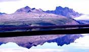 Ganz Island ist ein Naturpark von unvorstellbarer Grösse, Schönheit und Vielfalt. Die Landschaft reicht von moosgrünen Ebenen, auf denen Schafe weiden, bis zu kraterübersäten mondähnlichen Wüsten, auf denen die NASA für ihre Mondlandung 1969 übte. Und von Seen, Flüssen und Gletschern bis zu Schneebergen und Vulkanen jeder Art und Grösse, ein Eldorado für Geologen, aber auch für Menschen, die einfach die Natur und die Einsamkeit mögen. Einsam ist man hier wirklich, denn die Insel ist extrem dünn besiedelt: Auf den über 103’000 km2 wohnen gerade mal 280’000 Menschen, das macht 2,8 Menschen auf den Quadratkilometer – zum Vergleich: in der Schweiz sind es 170 Leute pro km2! Und von den 280’000 wohnen etwa 200’000 in den Städten, der Rest teilt sich die Riesenfläche mit einer halben Million Schafe und 80’000 Islandpferden. Auf den Strassen ausserhalb der Städte kann es zwar vorkommen, dass man mal auf ein Auto trifft (so alle zehn Minuten...), meist ist es dann aber ein Mietwagen eines Besuchers. Die sesshaften Ausländer machen nur gerade 2% der Bevölkerung aus, die meisten davon Schweden und Norweger... – für Kosovoalbaner, Jugoslawen und Ghanesen scheint das Land keine grosse Anziehungskraft auszuüben.