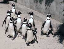Um 1910 soll es noch über 1.5 Millionen Brillenpinguine am Kap gegeben haben. Man nennt sie auch «African Penguin», weil es die einzige Rasse ist, die auf dem afrikanischen Kontinent brütet. Einmal mehr schaffte es der Mensch, sie beinahe auszurotten. Besonders scharf war man auf ihre Eier, und als man noch herausfand, dass der Guano, ihr Kot, ein hervorragender Dünger war, da zerstörte man mit dessen Abbau auch noch ihre Nistplätze.