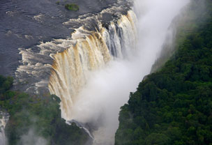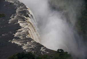 Blick von Zimbabwe aus auf den 1.7 km breiten Wasserfall, dessen Felswand auf Boden von Zambia steht.